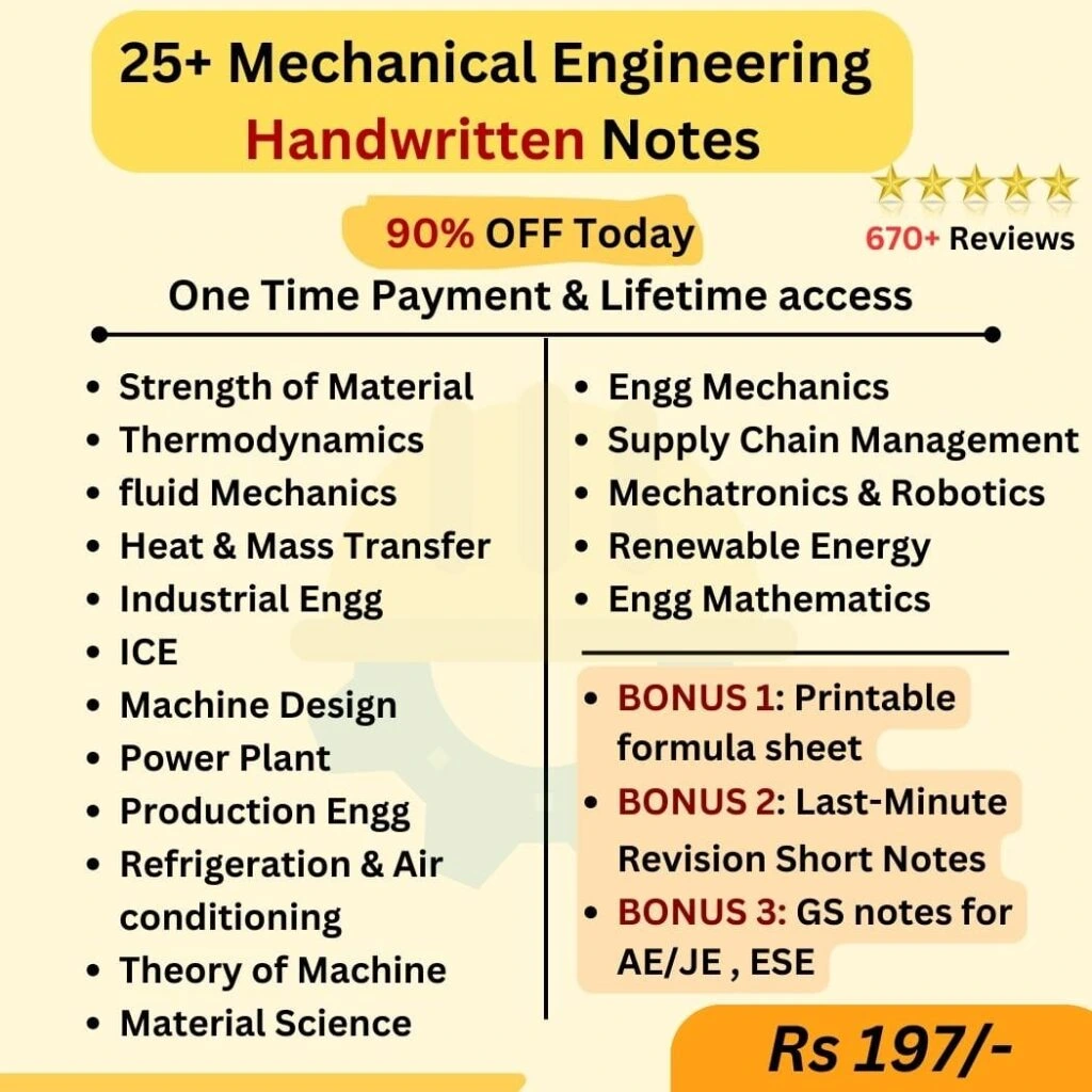 Get All Mechanical Engineering subject's Handwritten Notes, Short Notes and Printable Notes!